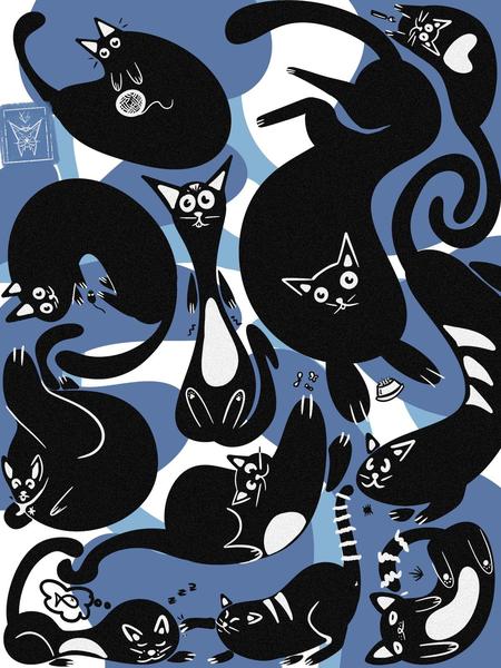 Usualmente gosto de mesclar técnicas e estilos em meus trabalhos. Basicamente, gosto de desenhar de tudo um pouco, dos mais diferentes jeitos. Mas, tenho que admitir meu favoritismo em desenhar animais, especialmente gatos, de todas as cores, de todas as formas.